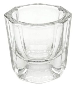 El vaso Dappen es un contenedor de cristal para mezclar, donde se puede colocar la cantidad necesaria de cualquier producto que se vaya a utilizar, bien sea polvos o acrílicos. Es un método sanitario para dispensar estos productos con el fin de que el trabajo sea organizado, impecable y de calidad.